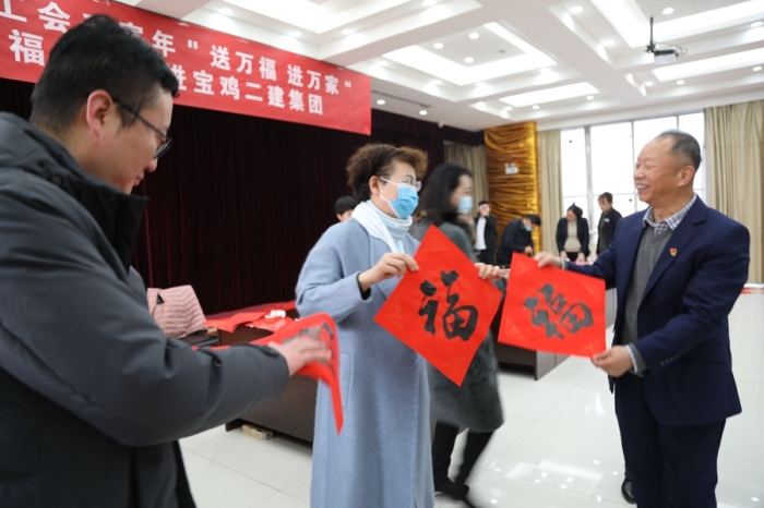 1月18日,寶雞市人大常委會副主任、總工會主席曹海芹,市職工文聯(lián)主席楊曉文、副主席郭旭及6名書法名家走進(jìn)集團公司,開展“送萬福 進(jìn)萬家”市總工會壬寅年迎春送福活動,為員工們送來了濃濃的關(guān)愛和新春的祝福。