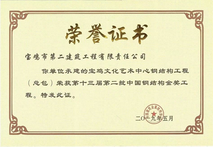 2019年中國鋼結構金獎工程(寶雞市文化藝術中心鋼結構工程)